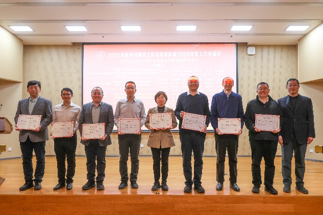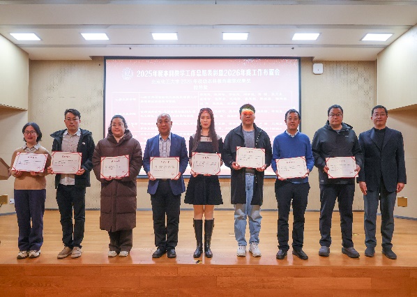 会上,对2025年度在本科教学工作中作出重要贡献、取得突出业绩的集体与个人予以表彰,并为 2025 年新建立的两个校级教材建设研究基地授牌。